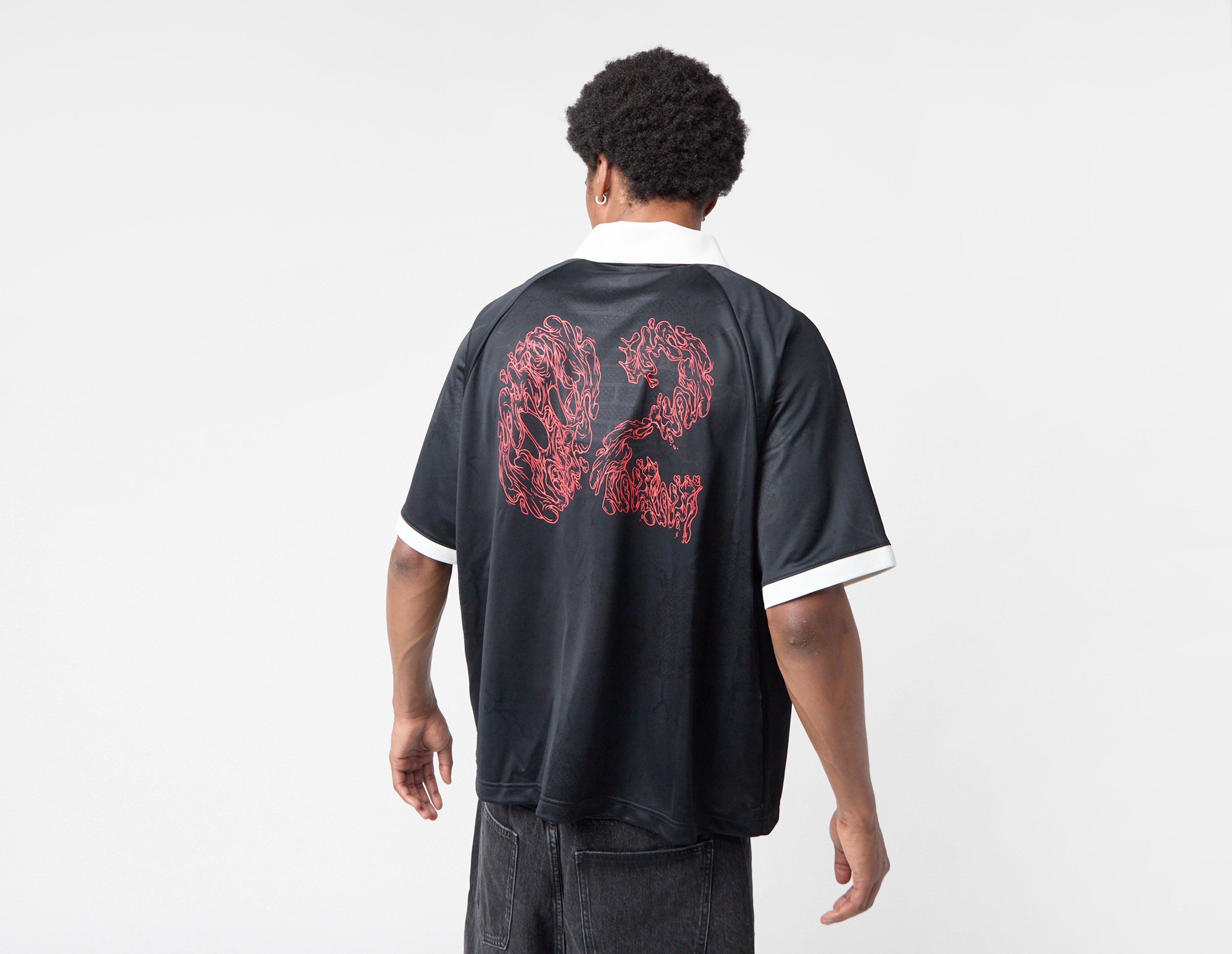 Het Nike SB Dri-FIT shirt is gemaakt van zweetafvoerend polyester, heeft een oversized pasvorm en is voorzien van contrasterende biezen en jacquard-graphics. | HV4457-010 | ons model is 1,88 m lang en draagt maat medium